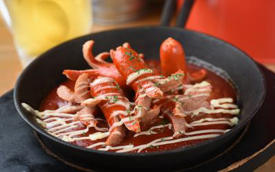 パスタを素揚げして特性のタレに付けた、スナック感覚で食べられるメニューです。がブ吉君のタマゴと並ぶ人気のサイドメニューで、一度食べるとやみつきになること必至です。