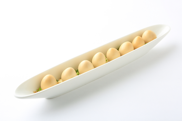 がぶ吉君が産んだタマゴを味付けして、あっさり味のマヨネーズの上に乗せた定番メニューです。見た目も「かわいい!」と女子から大人気。だけど、がぶ吉君ってオスだったような……。