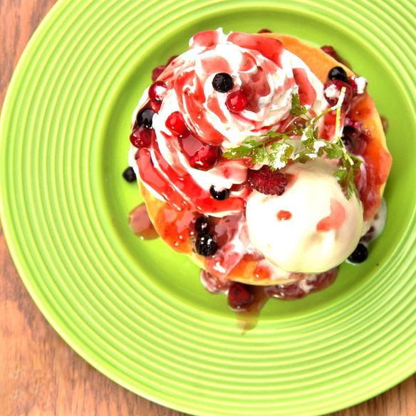 ふんわり軽く、ボリューミーなホイップクリームと彩り豊かなフルーツを贅沢に使用した女性に大人気のパンケーキ!甘い香りと共にハワイのハッピーな空気をお届けします♪