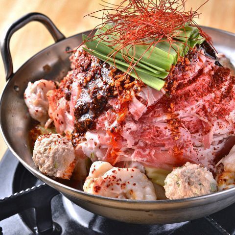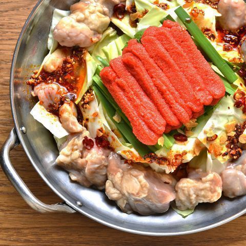 ぷりっぷりの”もつ”とたっぷりの新鮮野菜、極めつけはド迫力の明太子。宴会の席には間違いない博多名物 明太子もつ鍋!旨みが凝縮されたスープに、具材と明太子の旨味がマッチして贅沢で美味しい味わいに。