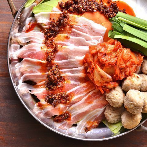 キムチと豚肉の旨みがきいた絶品スープが決め手の豚キムチ鍋。程よい辛さなので、辛いものが苦手な方でも安心です。アクセントのきいた旨辛鍋をご堪能下さい。