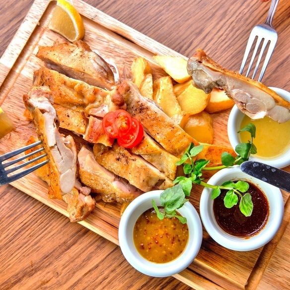 肉厚なお肉がほろっととろける、柔らかジューシーなビストロ風メインディシュ。特製スパイスと一緒に一晩漬け込み、低温の油で柔らかく煮込んだ後、特製ソースを塗って焼きあげた自慢のスペアリブです。食欲増進効果のある味わいはトロトロの程良い食感と共にご堪能いただけます。むしゃぶりつくようにお召し上りください♪