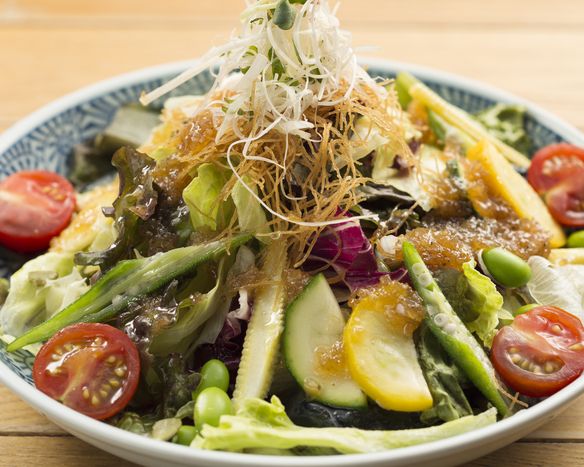 旬の野菜をたっぷりと盛り込んだ一家自慢の名物サラダ