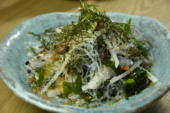 三種類の海藻は栄養たっぷり、わさびドレッシングでさっぱりどうぞ