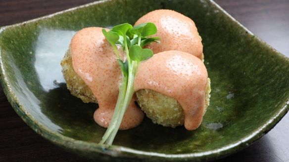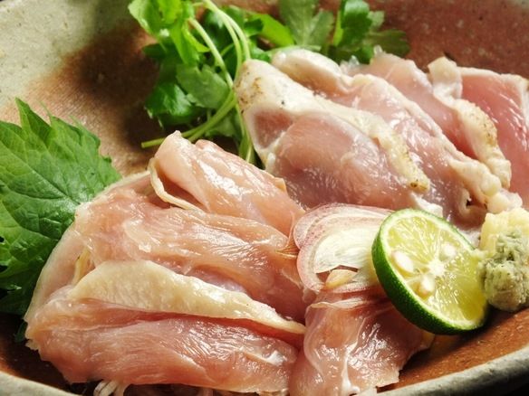 宮崎直送白レバーを低温調理して、軽くあぶり、旨塩と胡麻油で