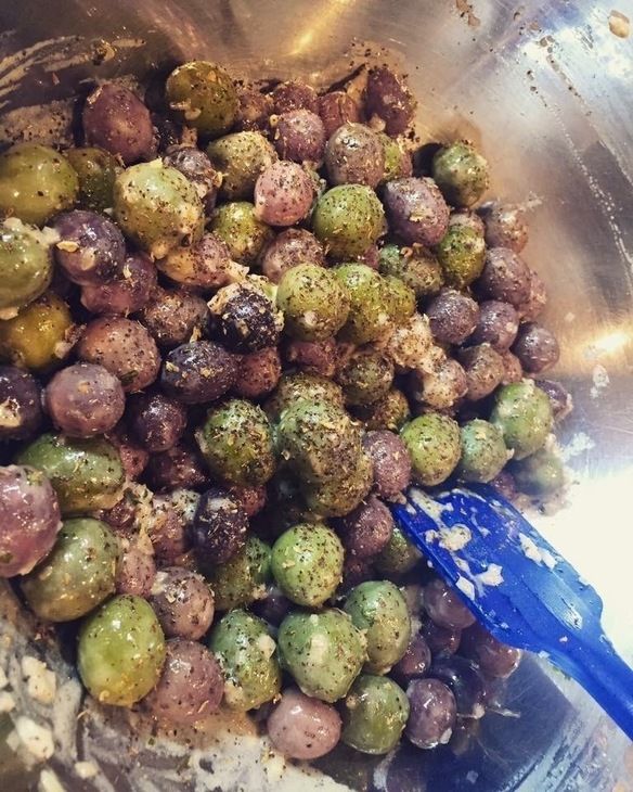 二色のオリーブに刻んだエシャロットと特製ドレッシングで味付け。お酒のお供に!