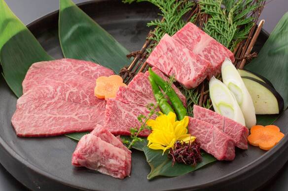 料理長おすすめの特選肉盛り合せ! その日の仕入れにより選び抜いた天草黒牛の美味しさを 部位の違いごとにお楽しみください。 (2~3人前)