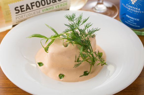 フワフワの海老真丈にオマール海老のビスクソースをかけた贅沢な逸品!