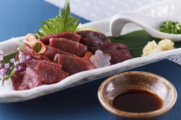 馬刺しのモモ・ロース・ヒレと全て赤身肉でご用意致しております。脂質が少なく鉄分豊富で低カロリー・高タンパクで人気の馬刺しをどうぞ!