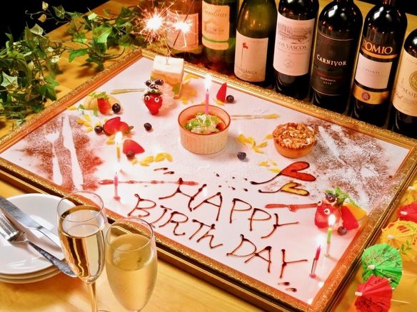 誕生日・記念日には特製プレートで大切な方をお祝いしましょう。お好きなメッセージをリクエストして下さい。いつもと違ったデザートプレートでサプライズを♪(要予約、1500円)