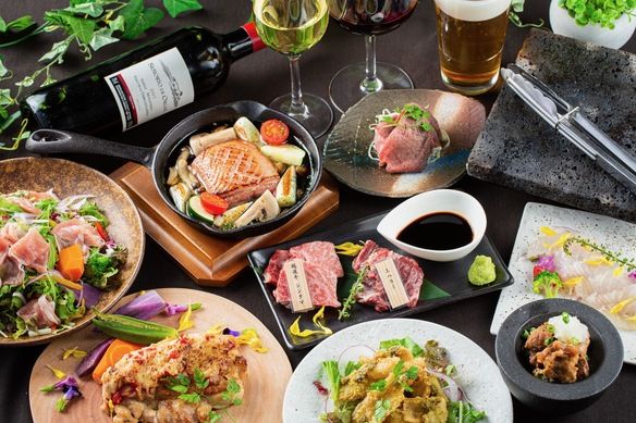 スタンダードコースとは一味違う贅沢な内容。 溶岩焼きも入っており、色んな楽しみ方ができ、バリエーションに富んだ内容のコースです! (5000円以上のコースはサングリアが追加され、日本酒・焼酎が3種類ずつに) 【金曜は2時間 / 繁忙期の12月・3月・4月は、全日2時間制】 ●飲み放題のラストオーダーは30分前 ●通常2.5h制。金曜は2h制。(繁忙期の12月・3月・4月は、全日2時間制) 【前菜】 ・シェフお任せ本日の前菜2種盛り合わせ 【サラダ】 ・生ハムと彩り野菜のイタリアンサラダ 【鮮魚】 ・豊洲市場直送 真鯛のカルパッチョ 【揚物】 ・新鮮アオリイカのフライドカラマリ 【お肉1】 ・低温調理でふっくら柔らか鴨のコンフィ 【お肉2】 ・総州古白鶏のグリル ピザ職人風 【メイン】 ・富士山溶岩焼き 越後牛シンタマと上ハラミ 【食事】 ・本日のお食事 【ドルチェ】 ・特製デザート ━━━━━━━━━━━━━━━━━━━━━━━━━ ※+600円=6600円で、お時間30分伸ばせます ※当日の人数キャンセルは、一人辺りの料理代金4500円 がかかります(貸切の場合は飲み放題含めた6000円) ※貸切は30名様から、15万円最低保証で承ります(金曜の貸切は要相談) ※仕入れ状況により一部メニューに変更がある場合があります ━━━━━━━━━━━━━━━━━━━━━━━━━