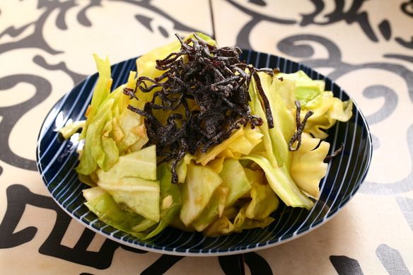 角切りキャベツに塩昆布をからめて。