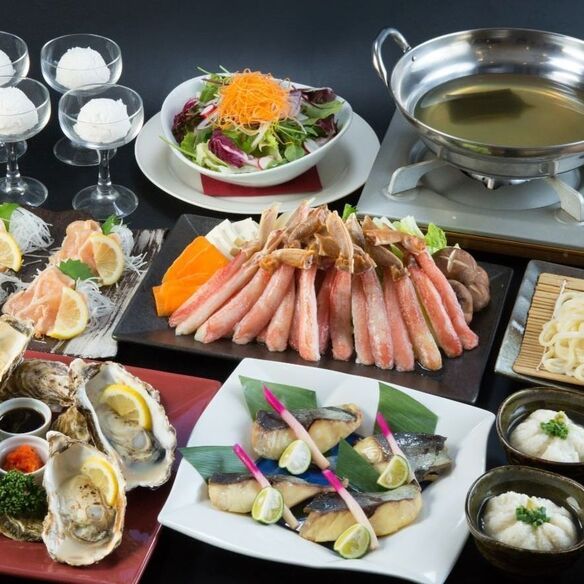 かにしゃぶや牡蠣が付いた贅沢なコース! ※ご予約1週間前迄、8名様以上の団体様のみ ※ランチ・ディナータイム可能です。 ※飲み放題込み6,000円です。