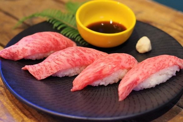 8000食前ワンドリンク付き 【前菜】 ・小さな有機野菜のバーニャカウダ ・トリュフ肉握り寿司 ・カポナータ ・トリュフとパルミジャーノの和牛上ロースユッケ 【焼肉1】 上ロースの10秒焼き カルボナーラ風卵かけご飯付き(CTKG) 【焼肉2】 厚切り上タン 蝦夷鹿肉 牛上ハラミ 【焼肉3】 特上ミスジ 特上霜降りA5和牛肉 【お口直し】 ピクルスナムル3種盛り合わせ 【焼肉4】 和牛上赤身肉2種 【焼肉5】 内臓2種 【食事】 トリュフと和牛イチボの煮込みソース フランス産そら豆のピューレ添え 自家製タリオリーニ 【デザート】 マンツォビーノ風ティラミス 抹茶のジェラートとイチゴのサンタ添え コーヒーOR紅茶 (アイスコーヒーORアイスティ)