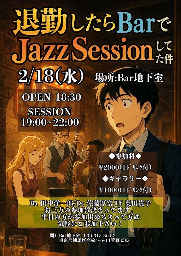 ベース 田中洋一郎 ドラム 佐藤厚富 Pf奥田貴子の3名は参加決まってます。