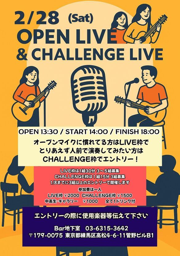 参加費 ¥2000 中高生 ¥1000 Gallery ¥1000 全て1ドリンク付