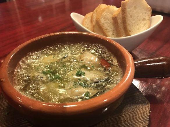 砂肝をハーブ入りの低温のオイルでじっくり火を通し、しっとり柔らかい食感に。