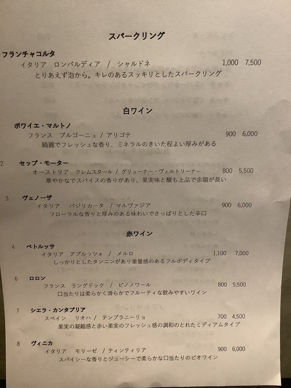 お料理やお客様のお好みに合わせてソムリエが厳選いたします! ボトルもご用意あります! ※写真はある日のリストです。通常のワインリストは仕入れ状況により変わることがあります。