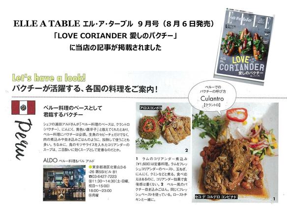 ELLE A TABLE エル・ア・ターブル9月号に当店の記事が掲載されました!!