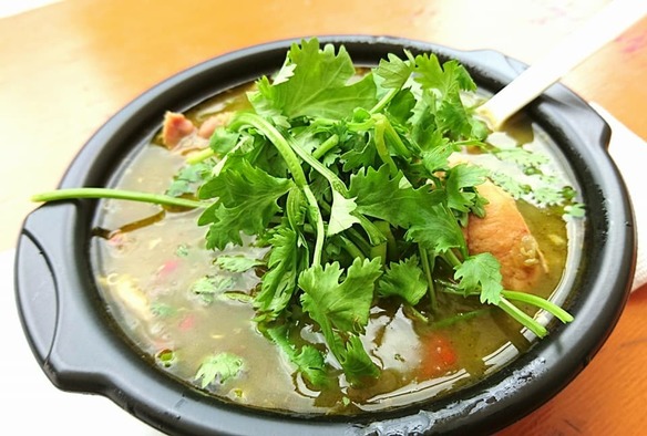 チキンのやさしいスープにデトックス効果の高いパクチーのペースト、アクセントにほんの少しペルーの黄とうがらし、そしてアンデスのスーパーフード「キヌア」!! やわらかく煮込まれた手羽元と臭みもなくコリコリとした食感も楽しい砂肝も入っています。