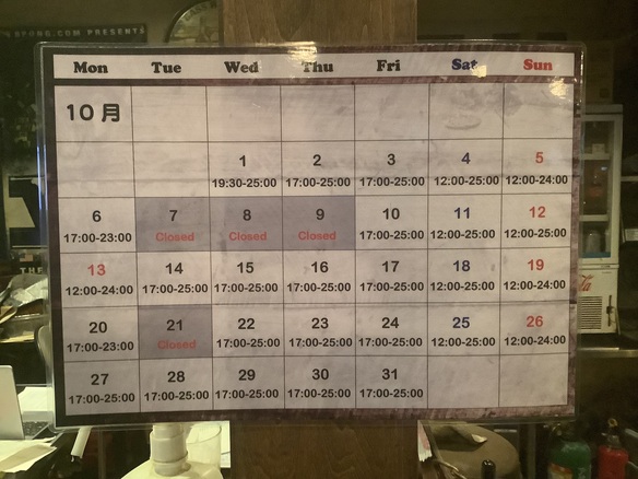 10月の営業予定です。プロ野球CS、日本シリーズ、サッカー代表戦など盛り沢山ですので、お早めのご予約お問い合わせお待ちしております。