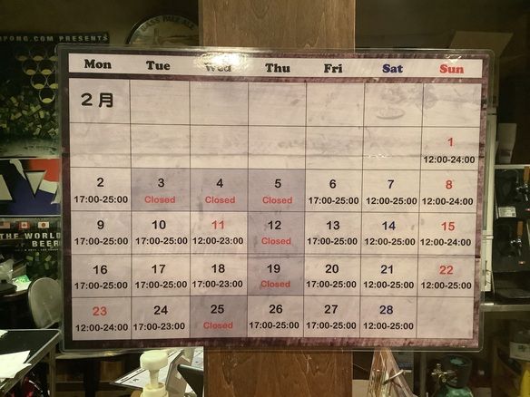 ※2/9(火)までは月曜日は営業、火曜日が定休日となります。