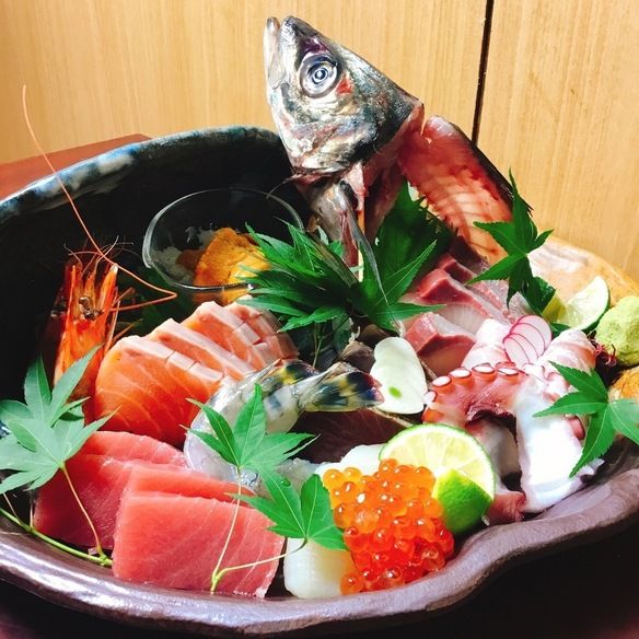 ★鮮魚のお造り盛り合わせ -6種- 980円 ・サーモン 390円 ・マグロ 390円 ・タコ 450円 ・甘エビ 450円 ・カツオのたたき 490円 ・ブリ 490円 ・海鮮ユッケ 680円 ・うに、いくら 刺し 880円