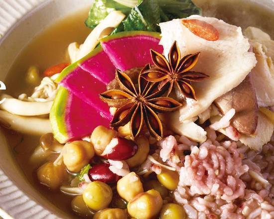 数種類のスパイスから作った薬膳スープと、寒ぶりの良質な脂で芯からポカポカのスープサラダです。