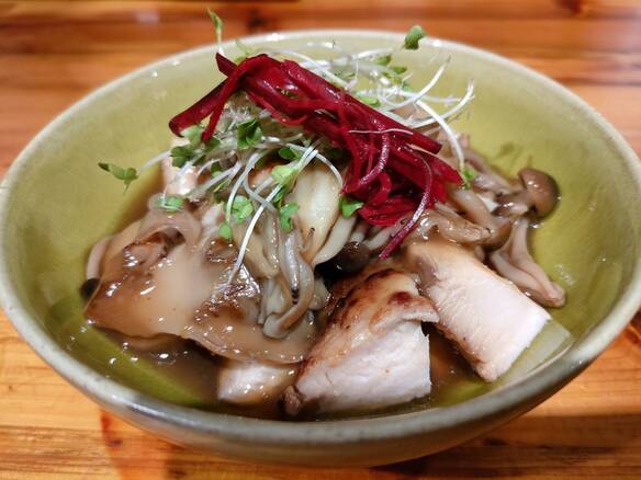豚肉は低温でゆっくりと火入れすることにより、柔らかジューシーに仕上がっています。