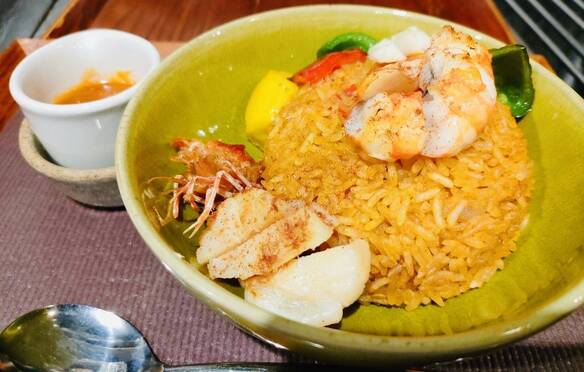 一皿で2度楽しめるパエリア。