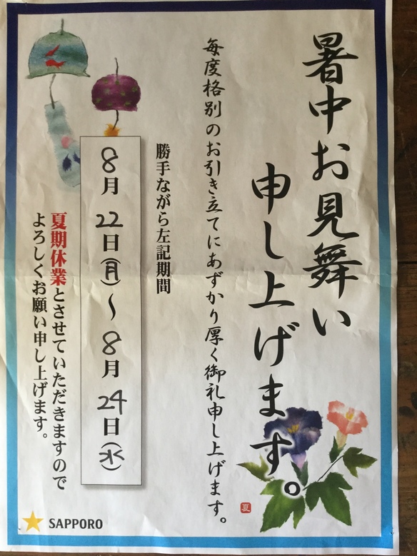 ………夏季休業のお知らせ ………