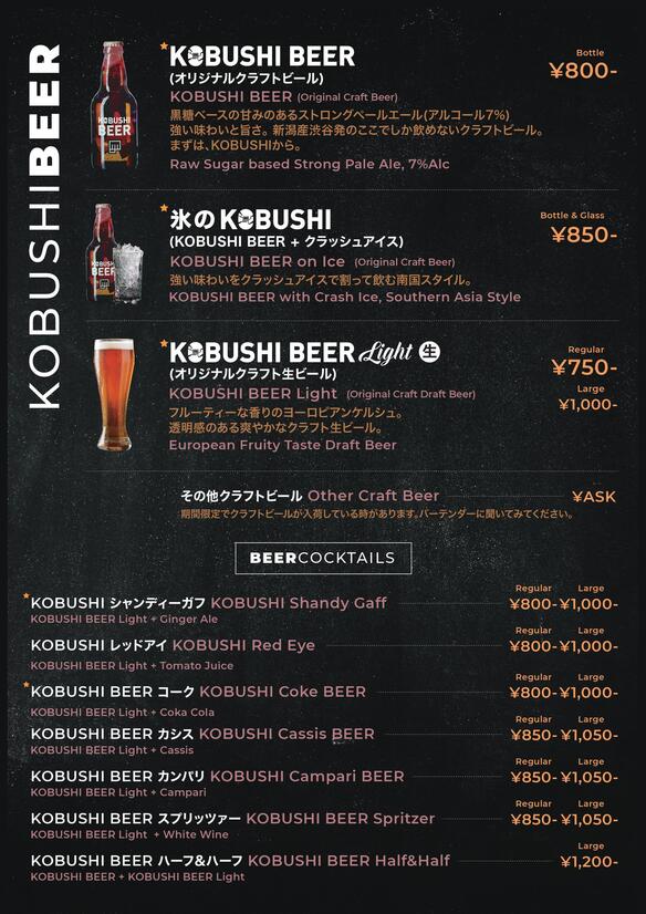 | 店名 | KOBUSHI BEER LOUNGE & BAR (コブシビアラウンジアンドバー) |