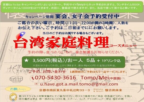 18:30〜21:00 京都府時短営業要請協力店。ラストオーダー閉店30分前。