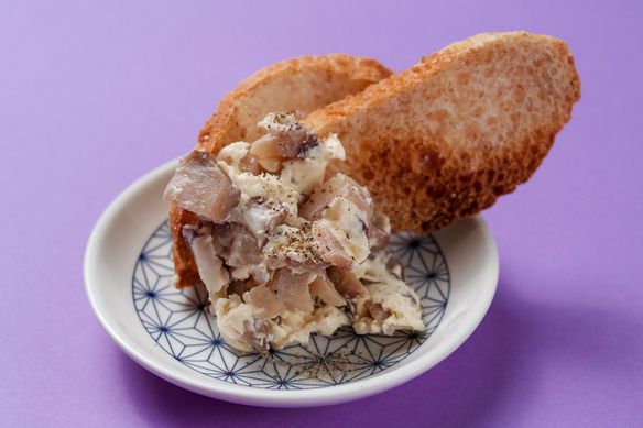いぶりがっこ独特の燻製の風味とクリームチーズの濃厚さが贅沢に融合しちびちびつまめます。メルばトーストにつけてどうぞ