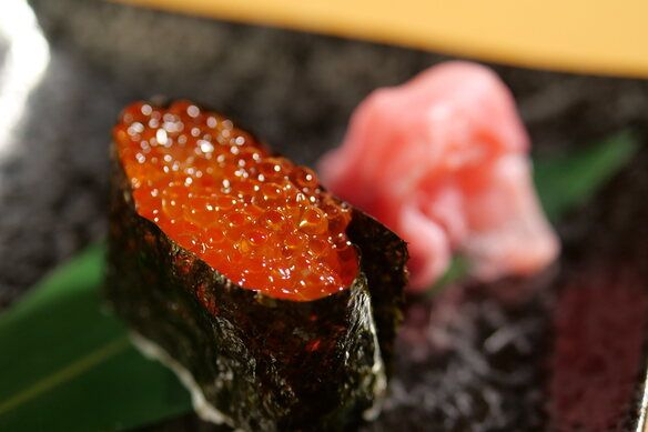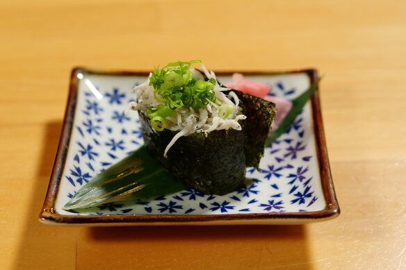マグロの中落部分を海苔に巻いています。海苔の香りとマグロの脂がよく合います。