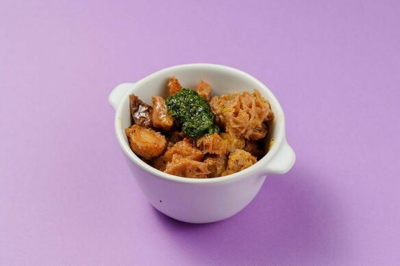 イタリア・フィレンツェの伝統料理「ランプレドット」に八丁味噌を加えモツの味噌煮込み風に