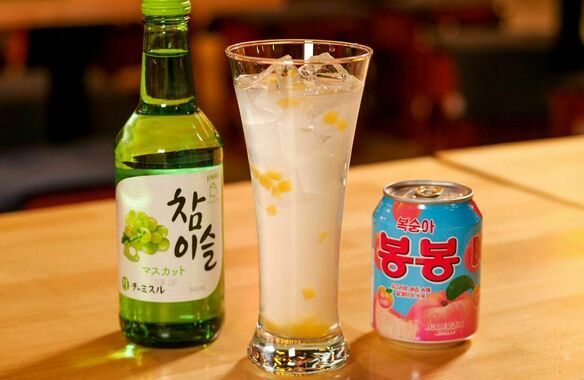 桃の果肉入り! チャミスルと割って飲んでもOK!!
