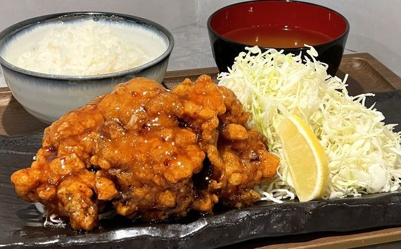 鮪のシマハラからついに新ランチ登場!! 夏の暑さを乗り越えるにんにくマシマシスタミナ飯🧄 こってり甘辛な漁師秘伝のたれに長時間漬け込んだ鶏肉をサクッと豪快に揚げました!