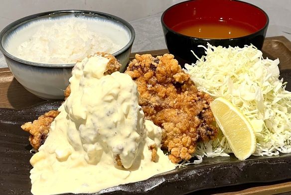 鮪のシマハラからついに新ランチ登場!! 夏の暑さを乗り越えるにんにくマシマシスタミナ飯🧄 こってり甘辛な漁師秘伝のたれに長時間漬け込んだ鶏肉をサクッと豪快に揚げました! 自家製濃厚タルタルでどうぞ🙌