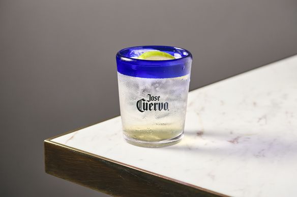 クエルボシルバーテキーラを使用したベーシックなマルガリータ。お好みでライムを搾ってお召し上がりください。