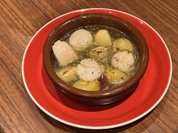 ホタテと栗を合わせてアヒージョにしました。