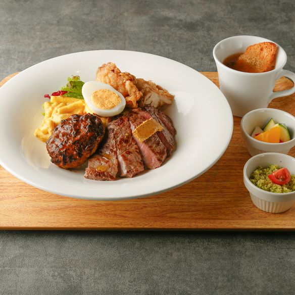 副菜2品、本日のスープがセットに、虎ノ門発信のボリューム満点肉屋のトルコライスは肉の詰め合わせ!