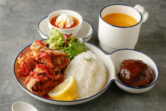 唐揚げ&ハンバーグ/ライス/デザート/ジュース付き