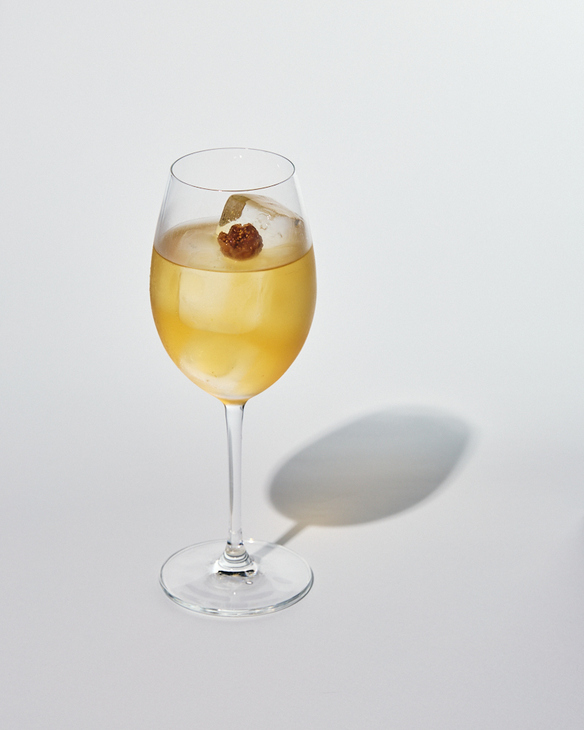 中国を代表する蒸留酒(白酒)にスパイスやレモンなどを入れ、ミルクパンチという製法で透明に濾過したカクテル