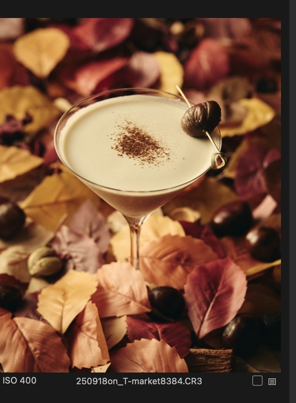 栗のシロップとペーストで仕上げた濃厚で香り高い秋カクテル。 ほのかに漂うカルーアのコクが大人の甘さを引き立てくれる1杯。