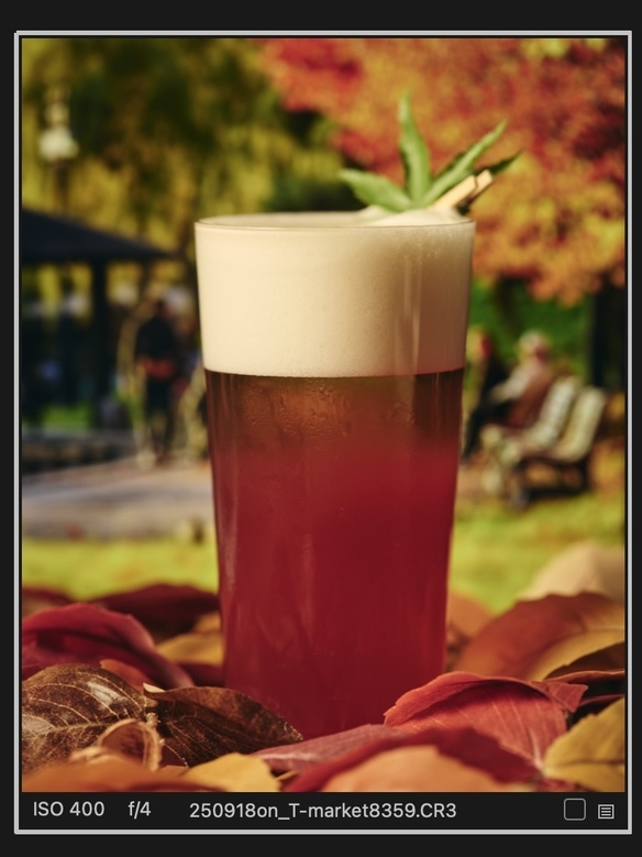 ジンジャエールとビールのコク、そしてグレナデンの甘酸っぱさ。 グラスの底から染まるグレナデンが秋紅葉を感じさせるカクテル。