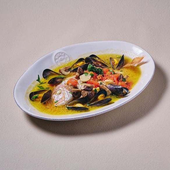 こだわりのムール貝と鮮魚を丸ごと1尾使用した、シンプルながらも旨み抜群のアクアパッツァです。鮮魚の種類はランダムに替わるので何が来るかはお楽しみで!