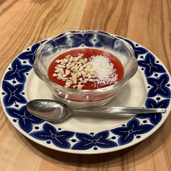 イスラエルココナッツミルクプリン ザクロソース ピーナッツ、ココナッツトッピング