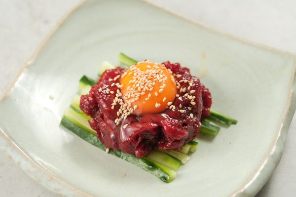 新鮮な馬肉の赤身を独自の味付けのユッケとして提供します。