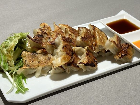 大人気のくまめんの一口餃子をたっぷり3人前盛り付けました。お食事にビールやハイボールのつまみにどうぞ!